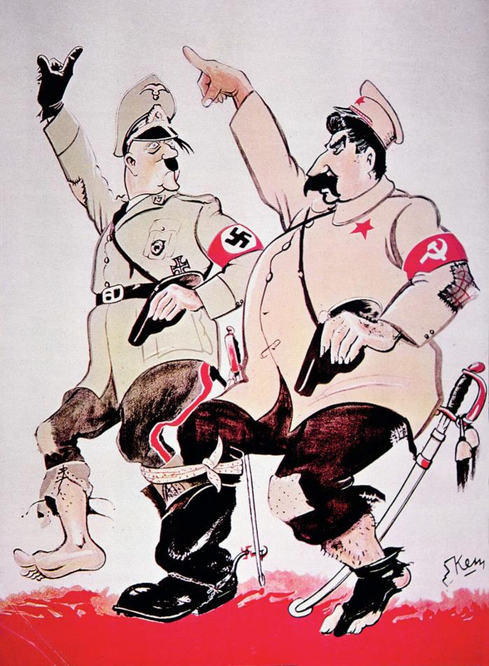 Affiche du caricaturiste britannique Kimon Evan Marengo (1904-1988) illustrant le pacte de non-agression germano-soviétique signé en août 1939