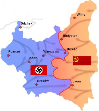 Une ligne de partage de la Pologne entre l’Allemagne nazie et l’Union soviétique est déterminée dès le 28 septembre 1939.