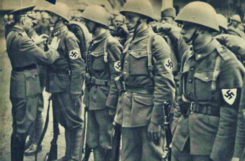 A l’issue de la campagne de Pologne, les soldats d’origine allemande de l’armée slovaque qui y ont pris part, sont décorés par le ministre de la Guerre slovaque le général Ferdinand Catlos.