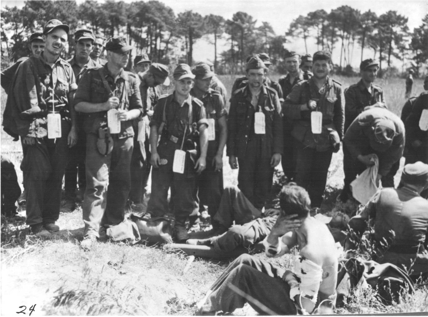 Soldats de la 242e division d’infanterie faits prisonniers aux abords directs de Red Beach à Cavalaire. Certains d’entre-eux sont des supplétifs azerbaïdjanais issus de l’Ost Bataillon 807 qui forment alors le IVe (Aserbeidschan) bataillon du Grenadier Regiment 765.