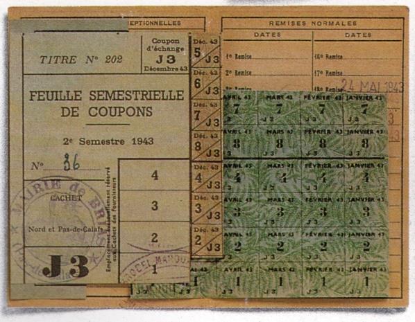Tickets de rationnement du pain, carte pour les textiles et coupons semestriels font partie du quotidien de la population française sous l’occupation