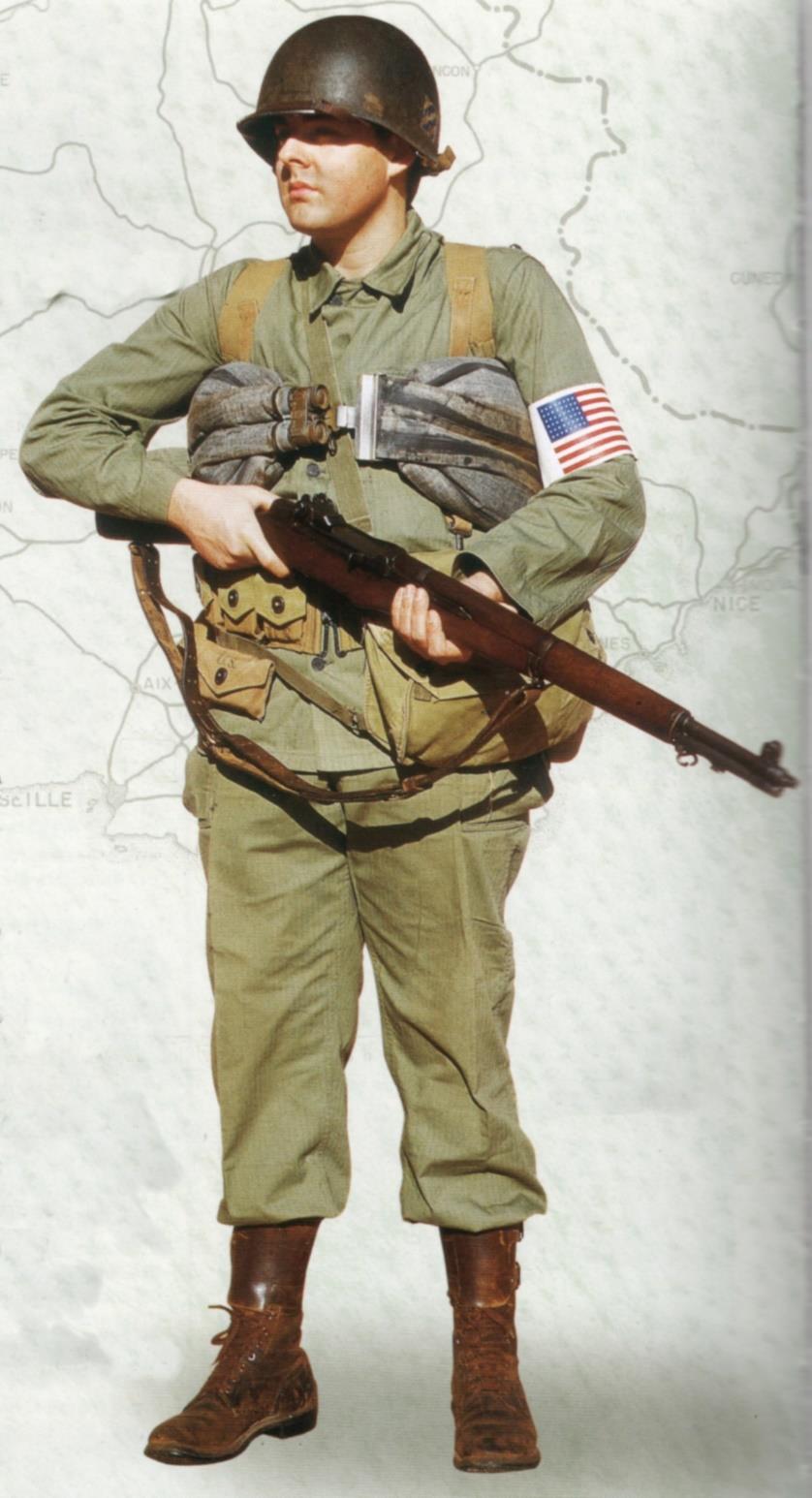 Soldat américain du 7e régiment de la 3e DI US en tenue de débarquement au matin du 15 août 1944 sur RED BEACH