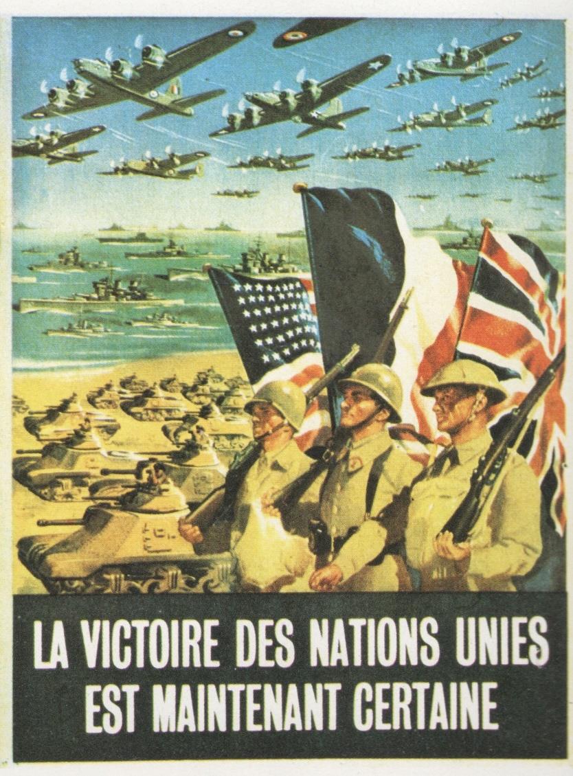 Mais cette victoire ne pourra être obtenue qu’avec les combats qui jalonneront la voie de la libération des villes et territoires, libération entreprise en Afrique du Nord et qui se poursuit à présent en Italie.